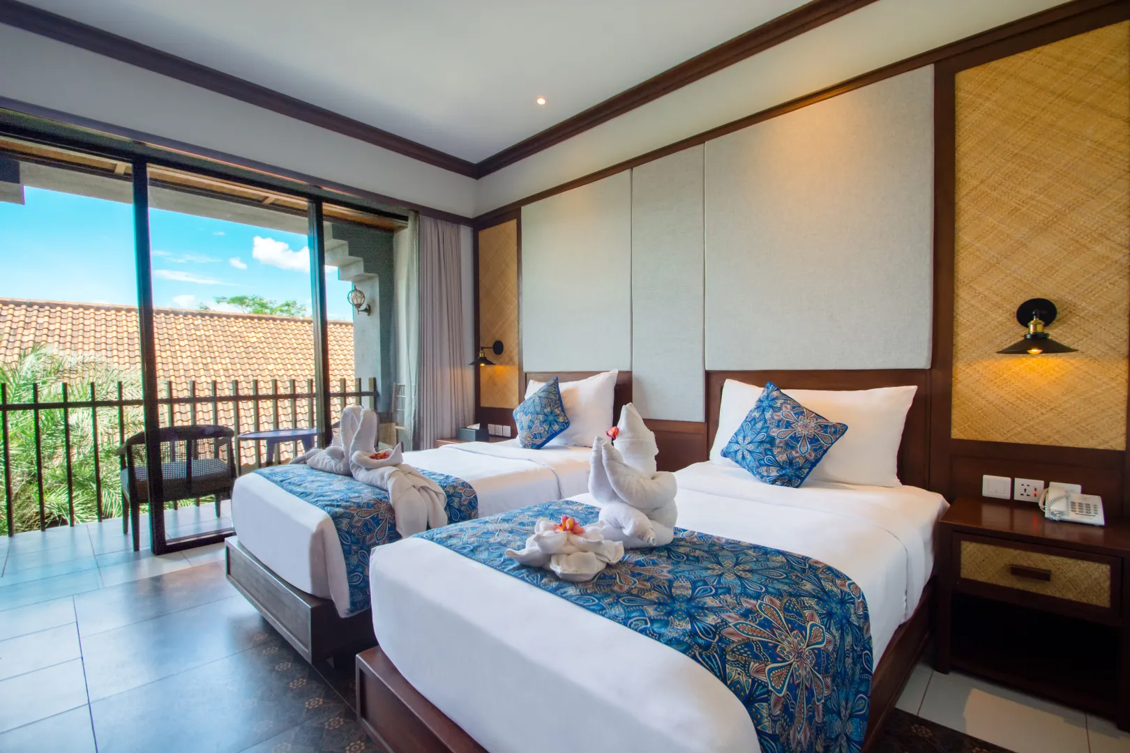 Nestled amidst lush rice fields, our 28.89 sqm Deluxe Garden Rooms offer a tranquil retreat where nature and comfort harmonize effortlessly. Thoughtfully designed with modern elegance and Balinese charm, each room features a plush king-size bed or twin beds, ensuring a restful night’s sleep. Step onto your private balcony or terrace, where the soothing greenery and gentle breeze create a peaceful sanctuary for relaxation. Whether you're welcoming the sunrise with a fresh cup of coffee or unwinding as dusk settles, this serene escape invites you to embrace the beauty of nature and find your perfect moment of tranquility.