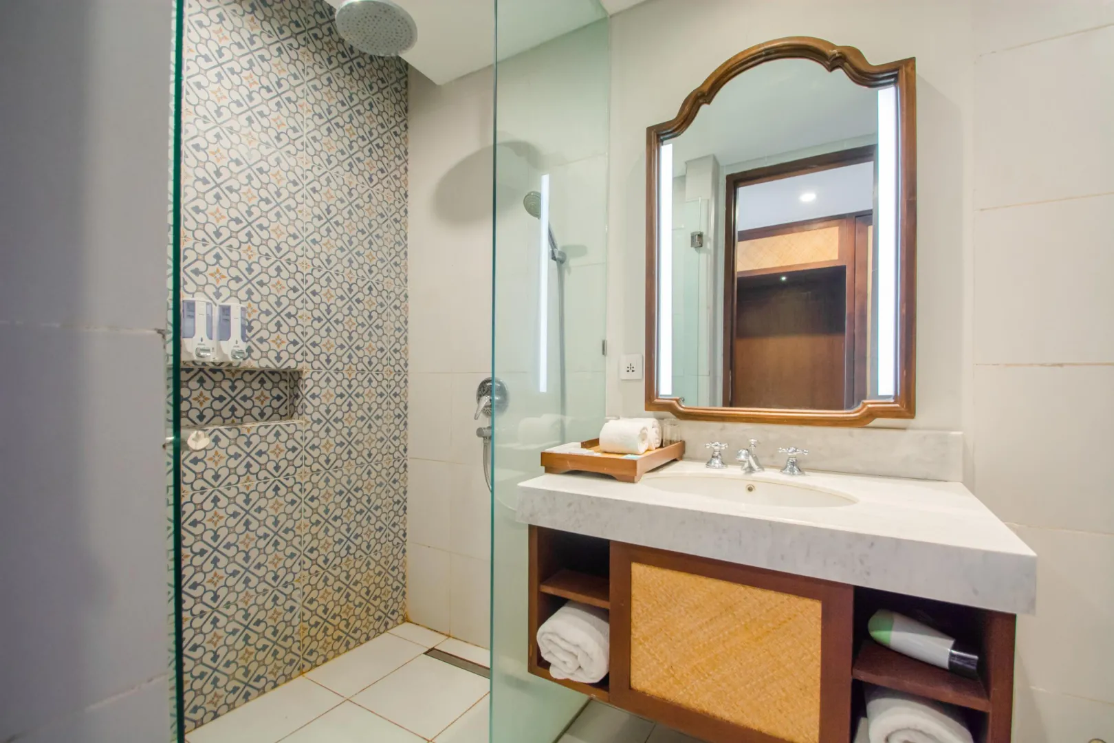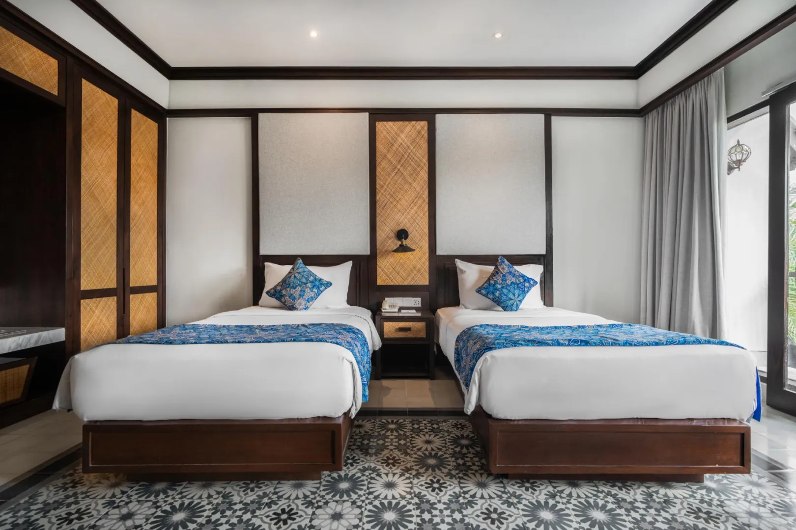 Step into the warmth of our 39.55 sqm Premier Twin Room, where modern elegance meets serene relaxation. Thoughtfully designed for comfort, this inviting space features plush twin beds with premium linens, ensuring a restful night’s sleep. Unwind on your private balcony, the perfect spot to enjoy morning coffee or an evening drink, while taking in the peaceful ambiance of the resort. The stylish bathroom, complete with contemporary amenities, adds to the sense of luxury and convenience