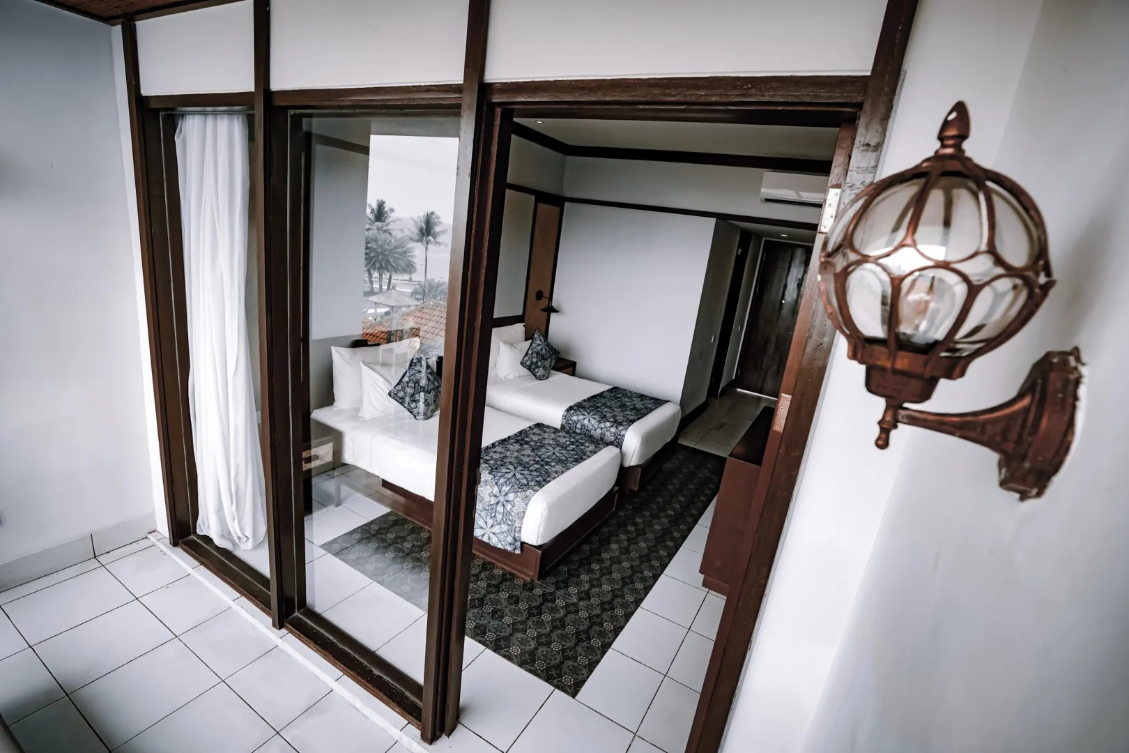 Nestled on the peaceful ground floor of our resort, the Grand Premier Room offers 42.16 square meters of inviting space designed for ultimate comfort and relaxation. Unwind in two plush twin beds, wake up to the gentle caress of the tropical breeze, and step onto your private balcony to soak in the lush greenery and distant views. Thoughtfully designed with elegant furnishings and warm touches, this serene retreat is perfect for a restful escape, whether you're savoring quiet moments or creating special memories with loved ones.